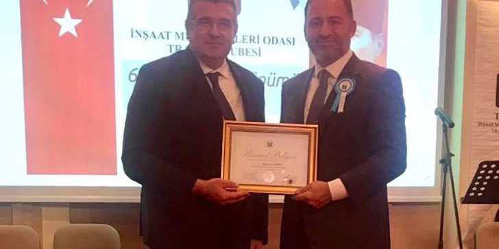 Yönetim Kurulu Başkanımız Sayın Aykut Gezmiş, meslek hayatının 25. yılı dolayısıyla TMMOB İnşaat Mühendisleri Odası tarafından hizmet belgesi ile onurlandırıldı.
